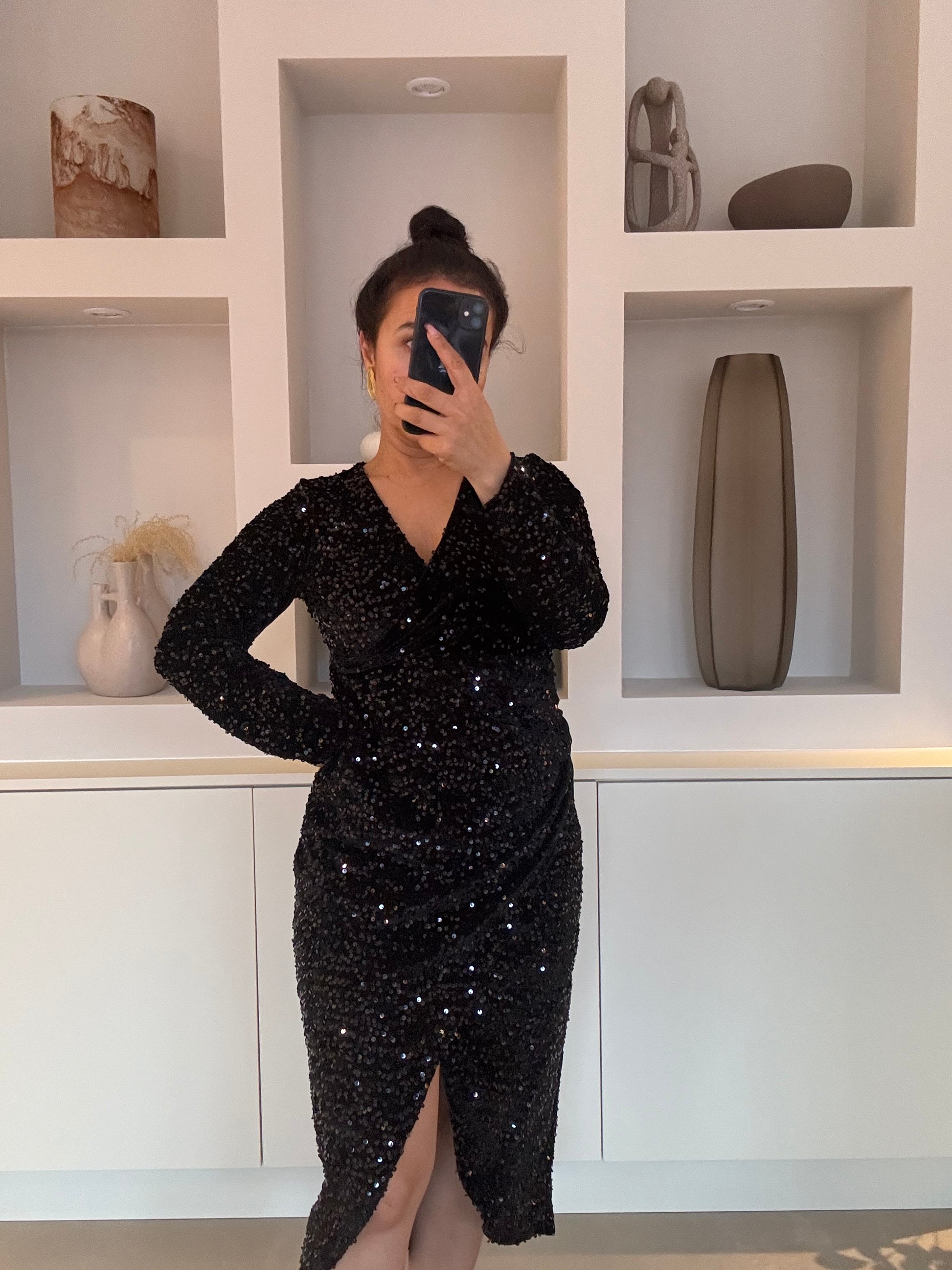 De split aan de voorkant maakt de jurk extra elegant en comfortabel om in te bewegen. Perfect voor feestjes, diners en speciale avonden.