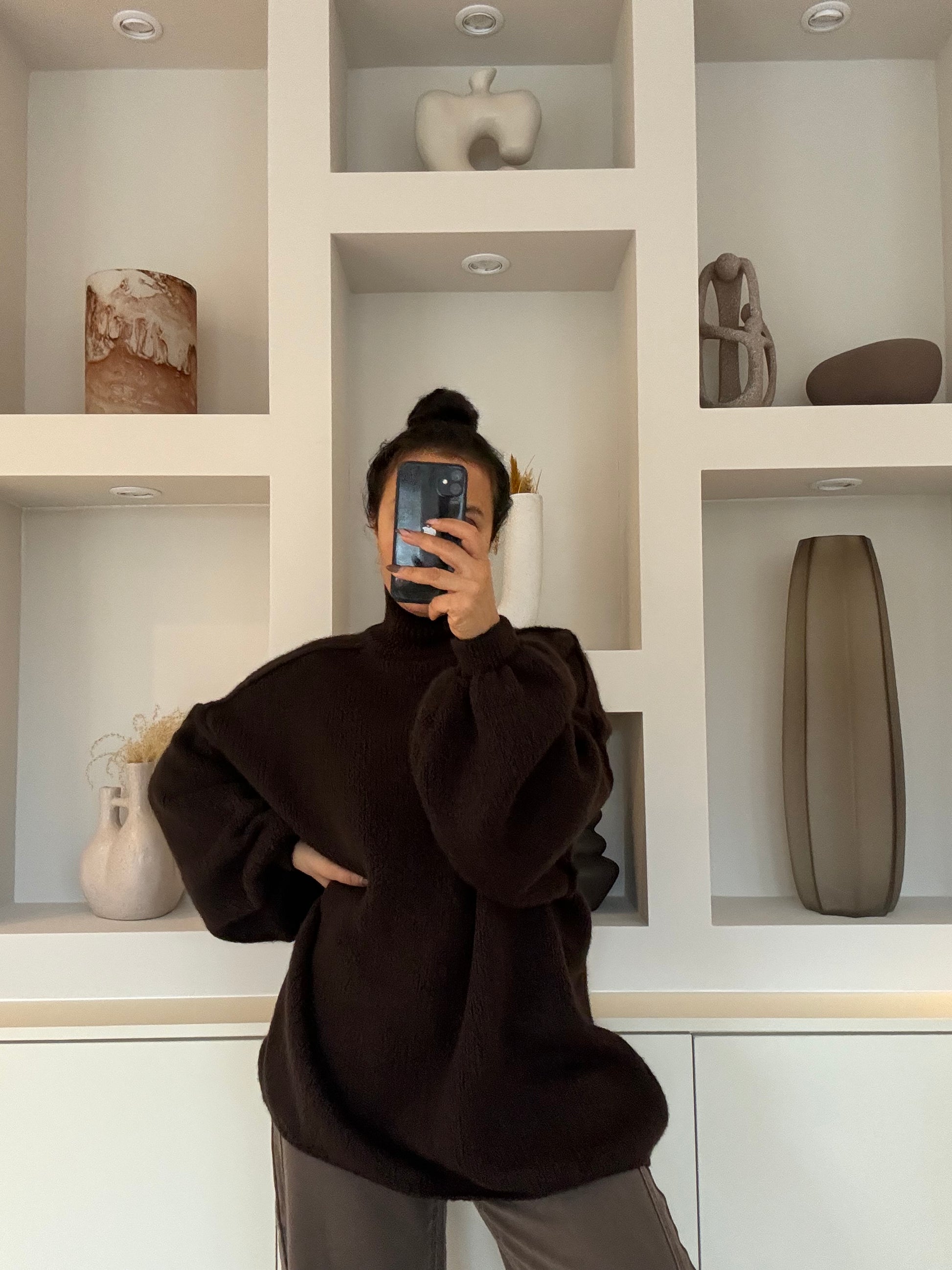 Omarm de warmte van het seizoen met onze Estée Turtleneck Oversized Sweater, een echte musthave voor de koude dagen. Deze oversized trui met elegante ballonmouwen is gemaakt in Italië van een luxe mix met 38% wol, waardoor hij heerlijk zacht en comfortabel aanvoelt. De losse pasvorm en de subtiele oversized col zorgen voor een moeiteloos stijlvolle look die bij elke outfit past.